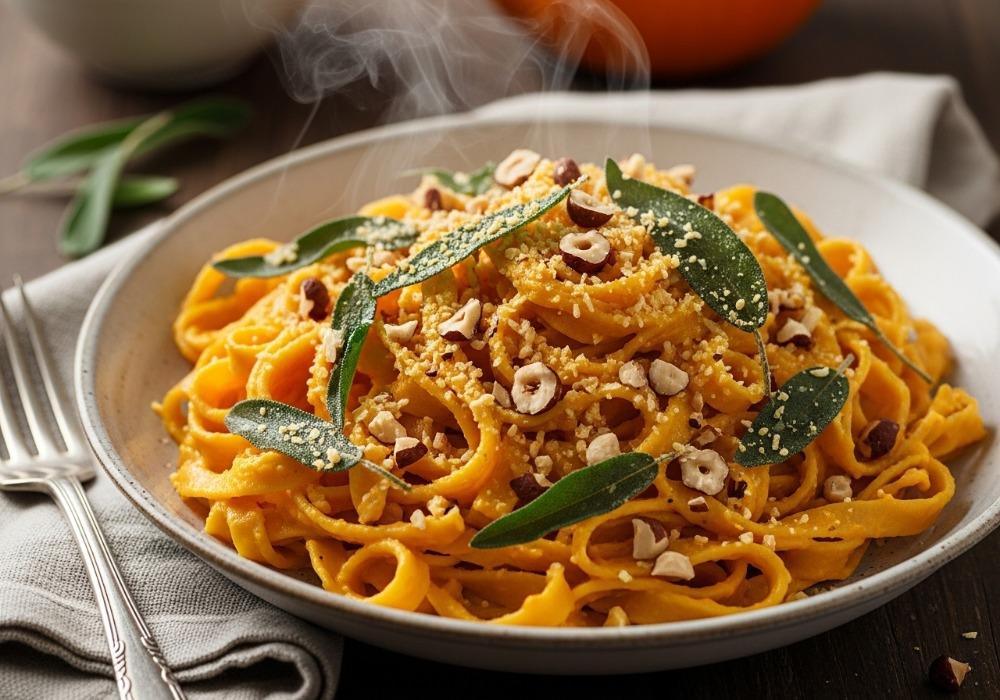 Cremige Hokkaido-Kürbis-Pasta mit knusprigem Salbei und gerösteten Haselnüssen
