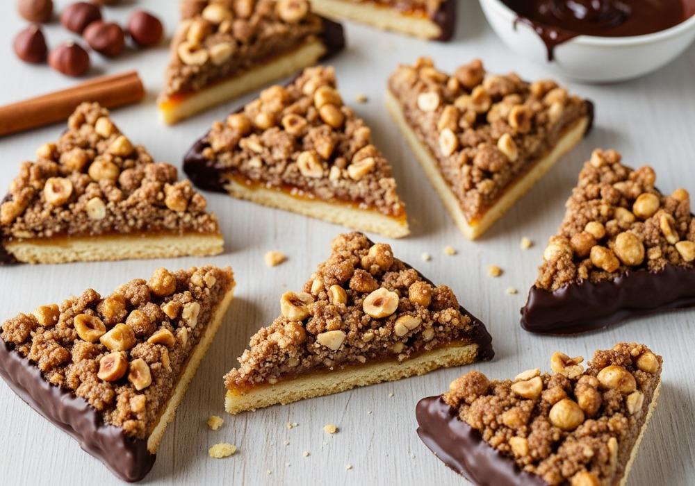 Für den Nussbelag die Butter, Zucker, Wasser (oder Sahne) und Zimt in einem Topf bei mittlerer Hitze schmelzen, bis sich der Zucker vollständig aufgelöst hat. Die gemahlenen und gehackten Haselnüsse hinzufügen und gut verrühren, bis eine homogene Masse entsteht. Die Nussmasse etwas abkühlen lassen, dann gleichmäßig auf dem mit Konfitüre bestrichenen Teig verteilen.