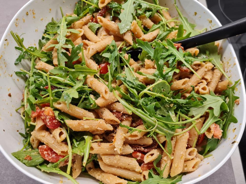 Kurz vor dem servieren den Rucola unterheben, damit er frisch bleibt.
