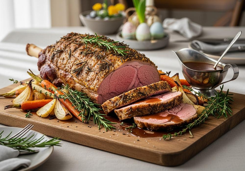 Osterlammbraten mit Rosmarin-Kräuterkruste und Wurzelgemüse