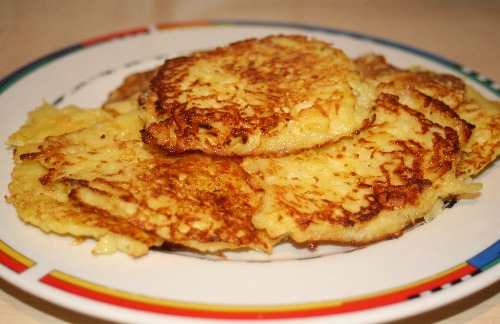 Rezept reicht für 2 Portionen bzw. 1 große. Man kennt Reibekuchen auch unter dem Namen Kartoffelpuffer.