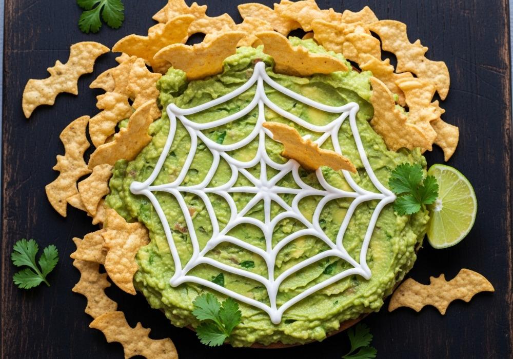 Spinnennetz-Guacamole mit Fledermaus-Chips