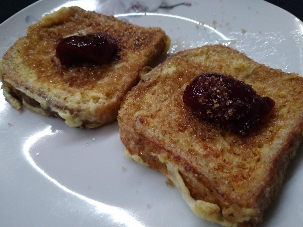 Öl in einer Pfanne erhitzen. Die getränkten Toasts in die Pfanne geben und goldbraun backen lassen. Die Toasts dann mit Marmelade und/oder Zucker und Zimt bestreichen bzw. bestreuen.
