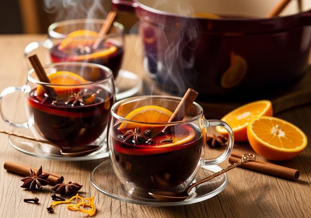 Vor dem Servieren optional einen Schuss Amaretto oder dunklen Rum hinzufügen. Die Gewürze und Orangenscheiben können entweder im Topf verbleiben oder vor dem Eingießen in Tassen entfernt werden, je nach Vorliebe.