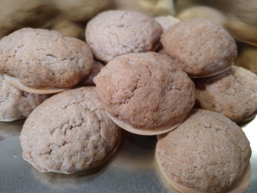 Aus dem Teig werden dann kleine Kugeln geformt, die dann jeweils auf eine Oblate kommen. Diese auf einem Backblech platzieren und bei 180 °C für 15-20 Minuten im Ofen backen lassen.